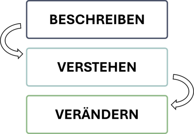 In vereinfachter Form geht es darum, sonderpädagogisch relevante Situationen zunächst systematisiert zu beschreiben, diese nach Möglichkeit theoriegleitet zu verstehen, um auf der Basis des Verstandenen passgenaue, wissenschaftlich gesehen sinnvolle, individuelle Bildungsangebote zu entwickeln, die der individuellen Entwicklung des jungen Menschen zur Erweiterung seiner gesellschaftlichen Teilhabe dienlich sind.