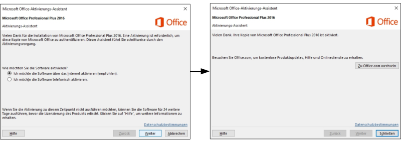 Neben LibreOffice ist auf den Seminar-Laptops und Computern auch MS Office Professional Plus 2016 vorinstalliert. Es kann vorkommen, dass man Office über das Internet aktivieren muss: